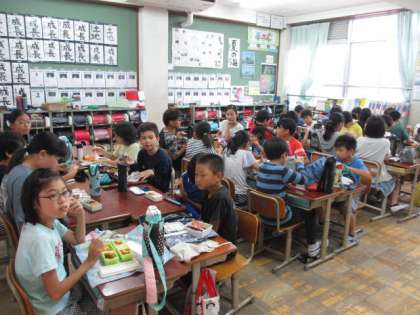 昼食時間,お弁当をほおばりながら,笑顔・笑顔・笑顔・