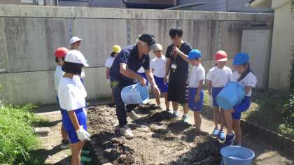 上鳥羽で農家をされている方にお世話になって,ねぎに大切な肥料や植え方などを丁寧に教えていただきました。