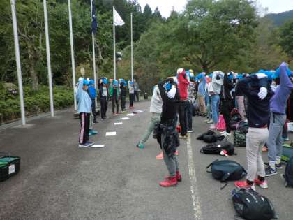 みんなで体操をして、登山の準備をしました。いよいよ出発です。