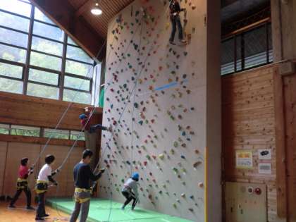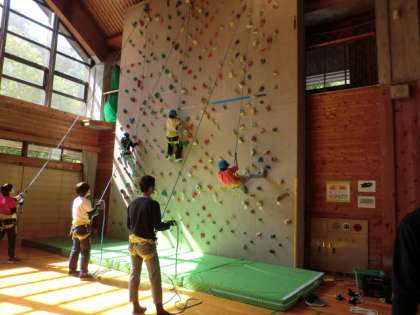 前半・後半に分かれてフライングディスクとクライミングをしました。クライミングは、高いところまで上るのでドキドキしながら上りました。低いところと高いところと二種類の高さに挑戦しました。