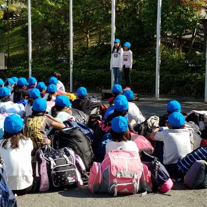 4日間の振り返りを研修室でしたのち,正親小学校と合同で退所式を行いました。