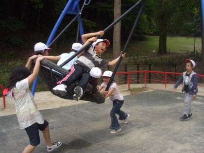 お天気が心配でしたが,移動時間だけが雨で,活動時間はとてもたくさん遊ぶことができました。のびのびと体を動かした楽しい一日でした。