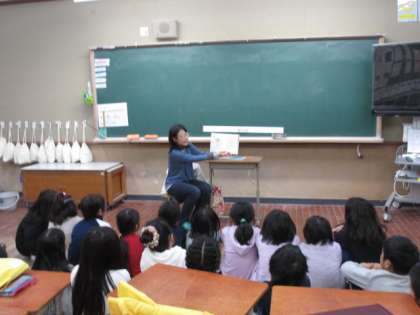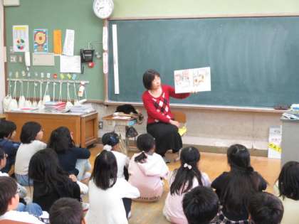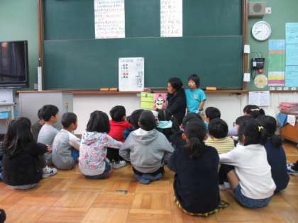 地域の方による読み聞かせがありました。クリスマスのお話や,宮沢賢治さんの作品な,ど毎回いろいろな本に出会うことができて,子ども達は楽しみにしています。