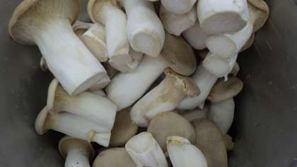 きのこのクリームシチューには,秋においしいエリンギと生しいたけを使用しました。