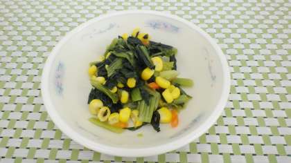 「わたしは,こまつなのソテーがとってもおいしかったです。どうしてかというと,とうもろこしがシャキシャキしていてとってもおいしかったです。またつくってください。」(2年児童)