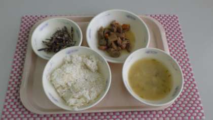 「今日の給食できょうふうみそしるでいろんな具材が入っていてとってもおいしかったです。ごまめとごはんもあっておいしかったです。また作って下さい。」(4年児童)