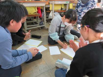 「手づくりあそび大会」は,全校のみんなで作って,全校みんなで楽しむ学校行事です。今日は,来週のにじょっこ活動で予定されている,「手づくりあそび大会」の準備に向けて,打合せをしました。つまり「準備の準備」です。高学年が中心になって動かなければならないので,同じグループで集まって,企画全体のイメージをより具体的にしていきます。何事にも準備は大切です。しっかり準備をして,本番を成功させて欲しいと思います。