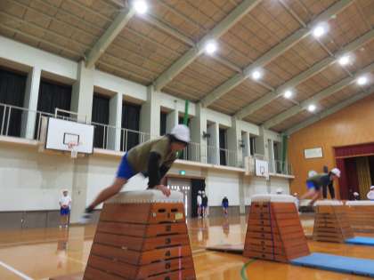 助走や踏切りに気をつけて,高い段数にも挑戦しています。