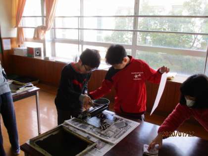 図画工作では版画の制作をしています。
