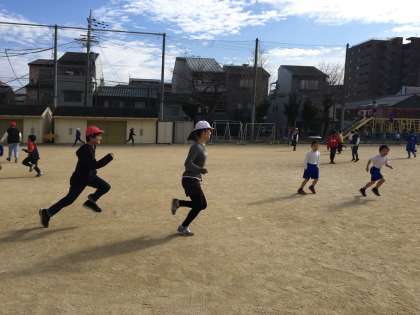 6年1組の子どもの中から,「卒業までに6年生で何かできないだろうか」という思いで動き出した子ども達がいます。その名も「卒業プロジェクト」。今回のテーマは「みんなで遊ぼう」です。タッチされると鬼が増えていくふえ鬼で遊びました。