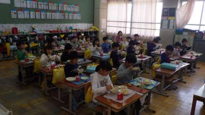 「ぼくは,きゅうしょくの中で一ばんおいしかったのは,ごもくにまめです。どうしてかというと,まめがシャキシャキしていておいしかったです。」(1年児童)