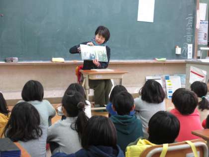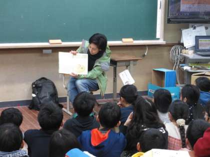 今朝も絵本を読んだり,ペープサートの人形劇をしたりする,優しい声が教室に響いていました。水曜日朝の読み聞かせはとても楽しみな時間です。