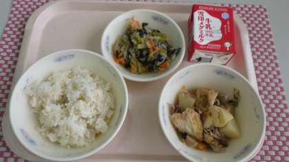 「ぶたにくとやさいのにつけがごはんと合っておいしかったです。じゃがいもがやわらかかったです。」(3年児童)