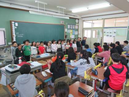 5時間目が始まってすぐ,1年生が6年生の教室にやってきました。「1年間,お世話になった6年生にお礼を言いたい」ということだったのです。一生懸命,送ってくれた1年生の言葉と手紙に,6年生はとっても嬉しそうな様子でした。