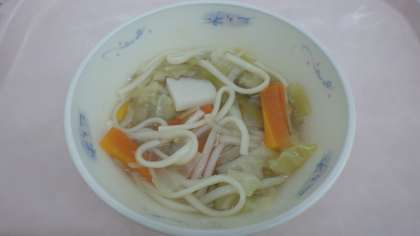 「ごもくあんかけうどんがあったかくておいしかったです。」(1年児童)