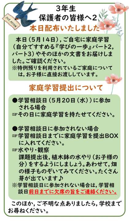 3年 「保護者の皆様へ2」