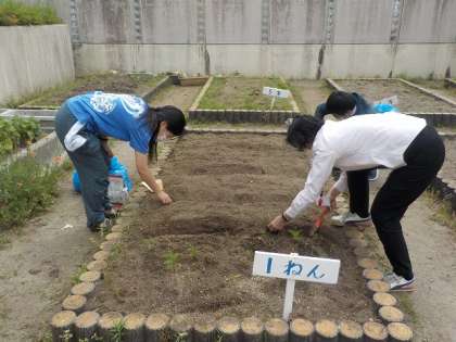 15日(金)に,1ねんせいのかだんに,せんせいたちが,たねをまきました。