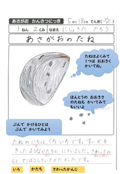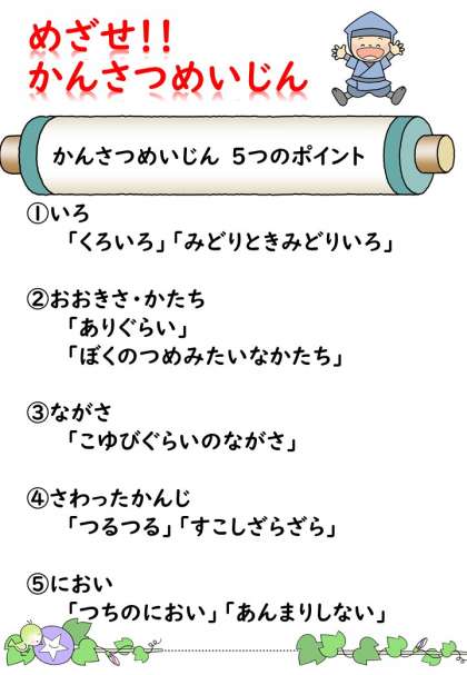 このまきものは これからもつかうから おぼえておいてね。みんなも かんさつめいじんに なれるかな。