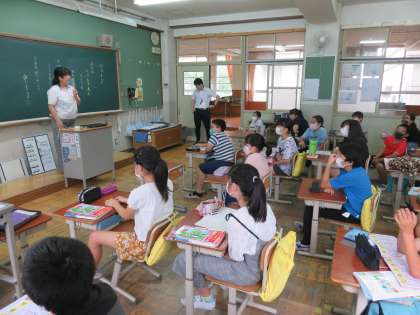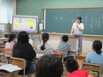 いろいろな体験を通して,教室での取組の一環を教えて頂きました。「一日に一回寸法を測る専門家」は「専」の書き順の覚え方です。他にも「場所を覚える」や「後出し負けじゃんけん」などの「脳トレ」の活動も紹介して頂き,子どもたちは楽しそうに「ふたば学級」について知れたようです。