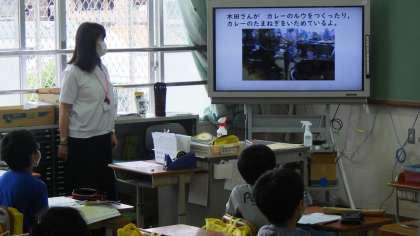 今日は,チャレンジ学習で全校が給食調理員さんがカレーを作っている様子のビデオを視聴しました。