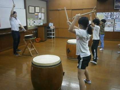5,6年生は,太鼓を打つ場所を移動するなど,少し高度な演奏に挑戦しています。低学年のお手本となるようなかっこいい演奏を目指して頑張っています。