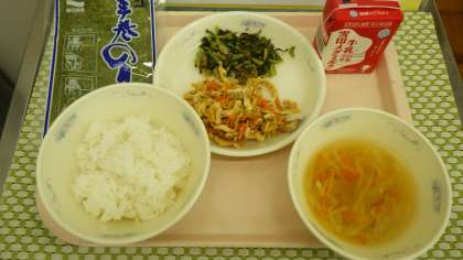 「のりとごはんの組み合わせがすごくよかったです。キャベツのすましじるがすごくおいしかったです。」(4年児童)