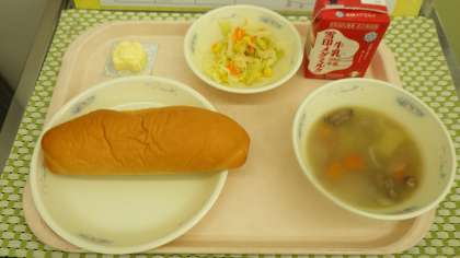 「ビーフがいっぱい入っていておいしかったです。あと,あじつけコッペパンがおいしかったです。一番に食べてしまいました。」(4年児童)