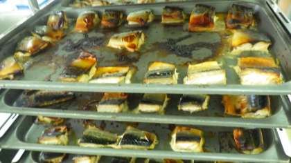 さばのつけ焼きは,スチームコンベクションオーブンで焼きました。