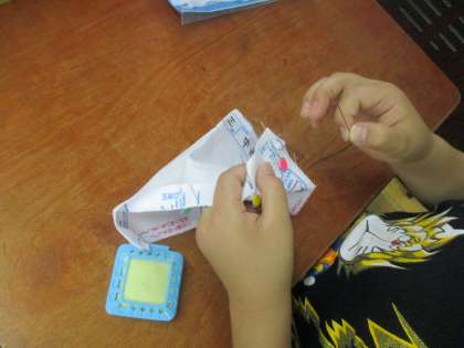 今日の家庭科の授業では,本返しぬいと半返しぬいの練習をしました。映像を見てからやってみましたが,迷うことなくすいすいと縫っていくことができました。玉結びと玉止めのやり方も少しずつ分かってきたようです。