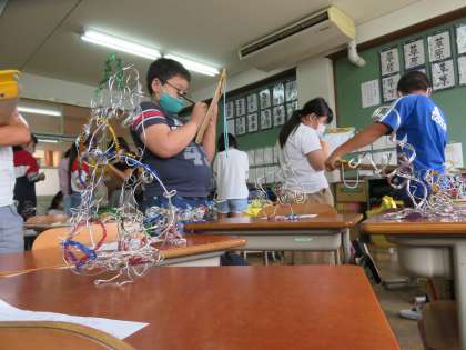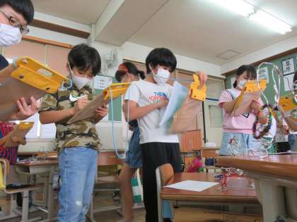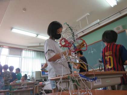 今回の授業は,お互いの作品を見合う「鑑賞の時間」です。お互いの作品の良いところ真剣な表情で見合う子どもたちの表情が印象的でした。