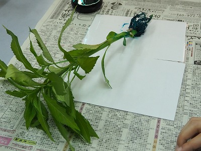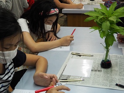 葉やくきを縦や横に切って切り口の様子を観察しています。