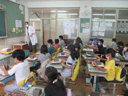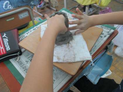 ねん土のかたまりを手でほぐしながら,立体作品を作りました。ねん土はすぐに乾いてしまうので,その都度水をつけていきながら形にしていきます。模様を入れたり,彫刻刀でけずったりしている子もいました。イメージをもって来週の活動に臨めそうです。