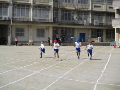 50メートル走では,少しでも速く走ろうとゴールを目指して全力で頑張る姿を見ることができました。