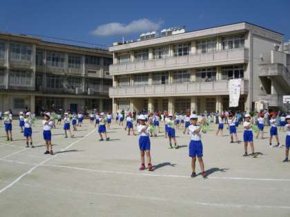 秋晴れの下,スポーツウィークを無事行うことができました。2年生は,50m走と団体演技を行いました。
