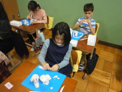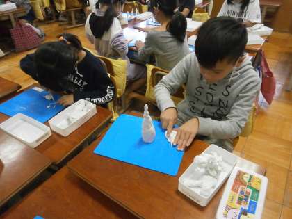 図画工作科で粘土を使い,こんなまちがあったらいいなと思うものを想像し,作りました。子どもたちの夢や思いの詰まった作品ができました。