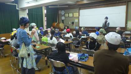 お味噌屋さんが来校してくださって,味見をしてくれました。