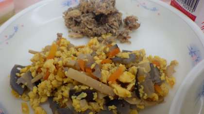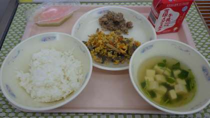 「きょうの三しょくゼリーがとてもおいしかったです。そして,ごはんとまぜるおかずがおいしかったです。」(1年児童)