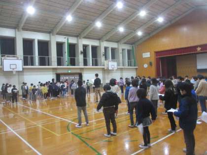 今日は,学年そろって体育館での練習です。