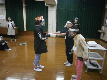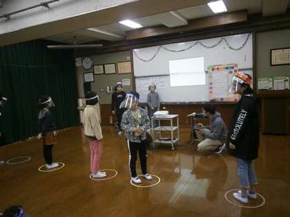 レクリエーションのルール説明は,実演したり,文字情報を出したりしてみんなが分かるような工夫をしていました。プレゼントや6年生にかぶってもらう花のかんむりも手作りでとてもかわいかったです。みんなで作り上げた心温まる会になり,6年生はとても喜んでいました。
