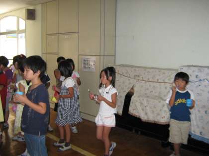歯みがきをしたあとの4年生が「口がすっきりした」「食べかすが挟まっていたのがとれた」「きもちよかった」と感想を話してくれました。
