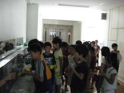 給食後の歯みがきを今日から取り組み始めました。給食後,子どもたちがうれしそうに歯ブラシとコップを持って手洗い場に集まってきました。そして友だちといっしょに歯みがきをしました。