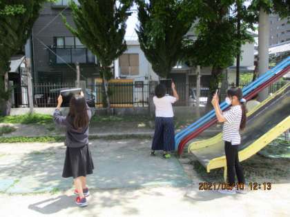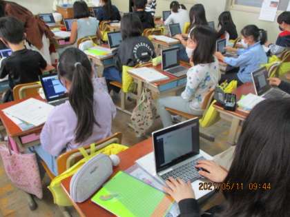 今週の理科では,各クラスタブレットを使って校庭の植物やツルレイシの種の観察カードを作成しています。まだタブレットの操作に悪戦苦闘する場面もありますが,画像を張り付けたり,文章を入力したりし,自分の観察カードを作成中です。