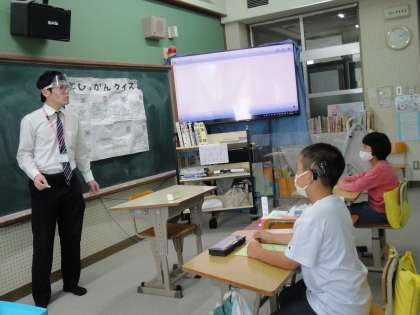 図書館司書の高田先生に,本の分類や図書館の本の並べ方などについて,お話を聞きました。詳しく教えてもらって,いろいろな本に興味をもち,本を借りに行くのが楽しみになったようです。