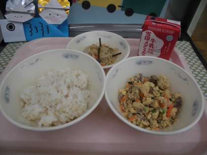 5月24日(月)麦ごはん・牛乳・他人煮・ごま酢煮