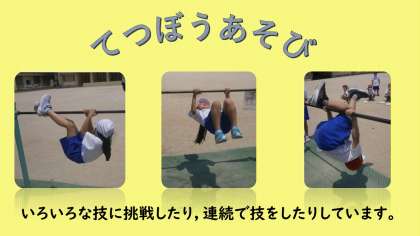 今日の体育では,鉄棒のいろいろな技に挑戦しました。