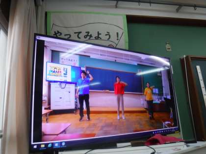 スポーツフェスティバルにむけて創作ダンスの練習が始まりました。学年ソングの「やってみよう」に合わせて手足を思い切り使う元気なダンスに挑戦します。今週から教室で練習が始まりました。まだなんとなくの動きですが,音楽が始まるとテレビ画面に注目して自然と体が動き出す子ども達がとっても可愛らしいです。これから約1ヶ月間,本番に向けて気持ちを高めていきたいと思います。