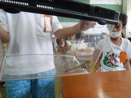 虫取り網で押さえてくれた子がいて,みんなで見て回りました。