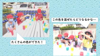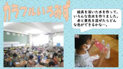 図画工作科では,色水を作り,混ぜることでどんな色ができるか楽しみながら活動をしました。