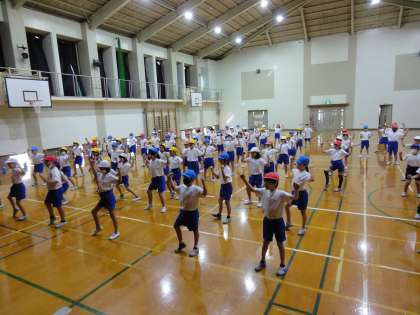スポーツフェスティバルのときに,準備体操を兼ねてするリズムダンスの練習をしました。みんな,音楽に合わせて元気に踊っていました。