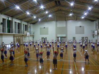 学級で大きな円の体形練習を作るところは,みんなの気持ちを合わせないとできません。